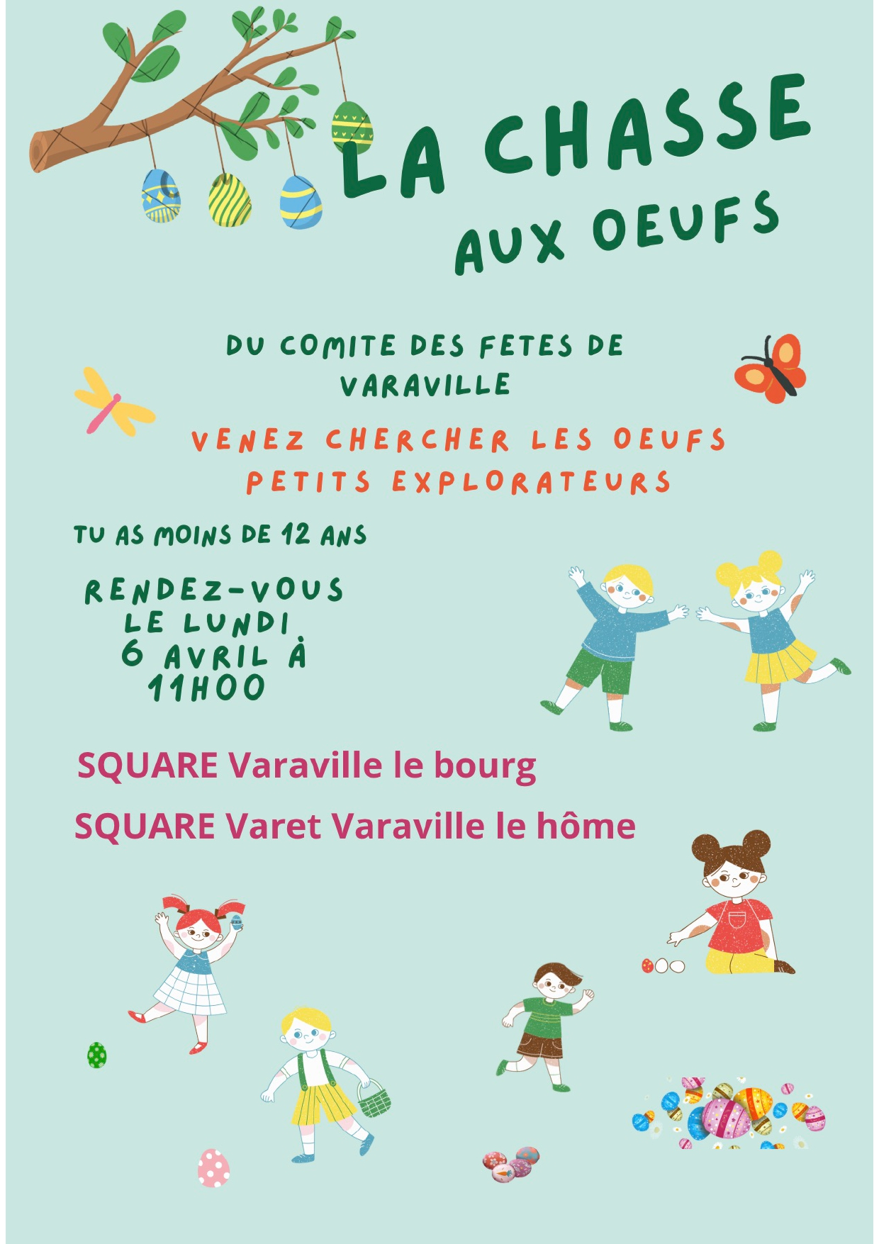 Deux chasses aux œufs de Pâques sont organisées le lundi 6 avril 2026 à 11 h : une au square Varet (39 bis avenue Président René Coty, le Hôme) et une autre à l’aire de jeux pour enfants du bourg (rue de la Libération).